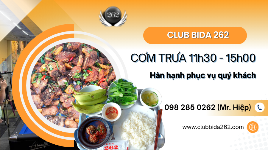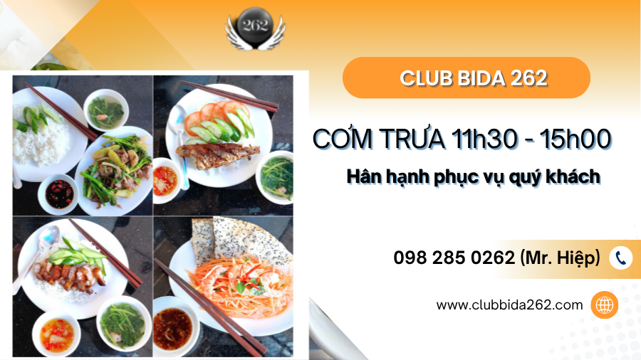 Nếu bạn đang tìm một địa chỉ chơi bida đẳng cấp, có thể vừa thi đấu vừa ăn trưa tiện lợi, hãy đến ngay CLUB Bida 262 – nơi hội tụ đam mê, kỹ thuật và sự thoải mái tuyệt đối!